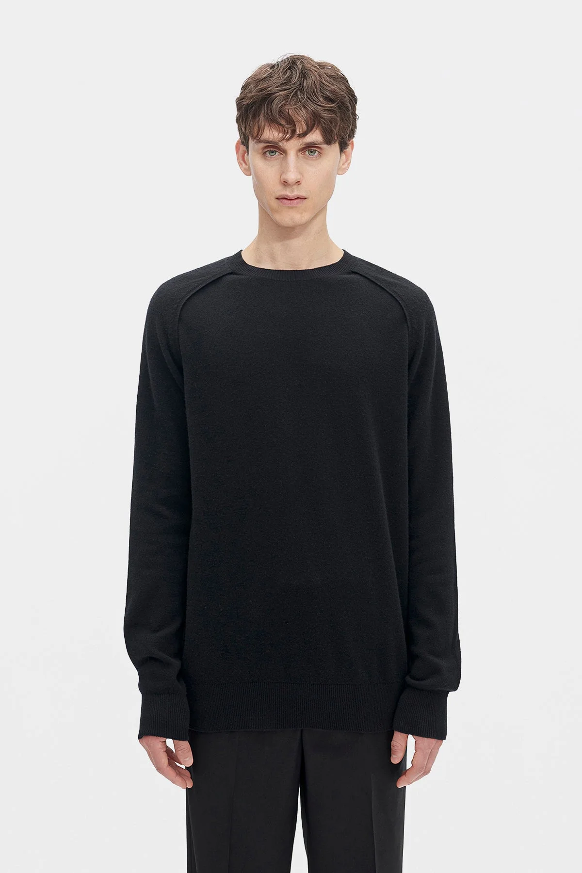 Men's Lemme Knitted Crewneck Sweater - Cut Out Armhole Detail - Black - 80% Virgin Wool 20% Cashmere - Made In Italy Model wears Italian size 48 Height: 188 cm Waist: 70 cm Hips: 90 cm