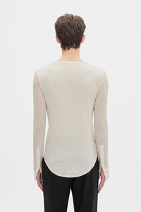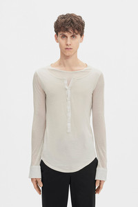 Leo Layered Serafino Top in Light Cotton Jersey - Ivory - layered Boat Neck - Half-Button Closure - Dropped Shoulders - Long Sleeves - Buttoned Cuffs - Curved Hem - Slim Fit - 100% Cotton - Made in Italy Model wears size M The fit of the item is narrow. Please consider this when selecting your size. Care To maintain the beauty and integrity of your purchase, we recommend treating it with care. Simple maintenance practices, such as gentle washing and proper storage, can effectively preserve the longevity of your favorites. We encourage you to refer to the care instructions included with each item, designed to help you keep your purchase in top condition. Design Our dedication to excellence extends beyond materials; it encompasses the artistry and craftsmanship illustrated in every piece we create.