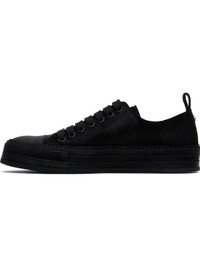 Low-top coated calfskin suede sneakers in black. - Logo plaque at lace-up closure - Pull-loop at heel collar - Rivet at heel counter - Buffed calfskin and nubuck lining - Treaded rubber sole Supplier color: Black