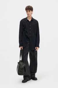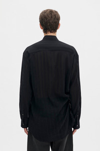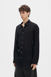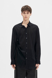 Randolf Dobby Stripe Shirt with Adjustable Strap - Black - Semi-Sheer Light Dobby Stripes - Classic Collar - Button Closure - adjustable Buckled Grosgrain Shoulder Strap - Side Gathering - Oversized Fit - Can Be Styled in Different Ways with Buckled Grosgrain Strap - 80% Cotton, 15% Wool, 5% Cupro - Made in Italy Model wears italian size 48 The fit of this item is oversize. If you prefer a narrow fit, consider purchasing this item one size down from your usual size. Care To maintain the beauty and integrity of your purchase, we recommend treating it with care. Simple maintenance practices, such as gentle washing and proper storage, can effectively preserve the longevity of your favorites. We encourage you to refer to the care instructions included with each item, designed to help you keep your purchase in top condition. Design Our dedication to excellence extends beyond materials; it encompasses the artistry and craftsmanship illustrated in every piece we create.
