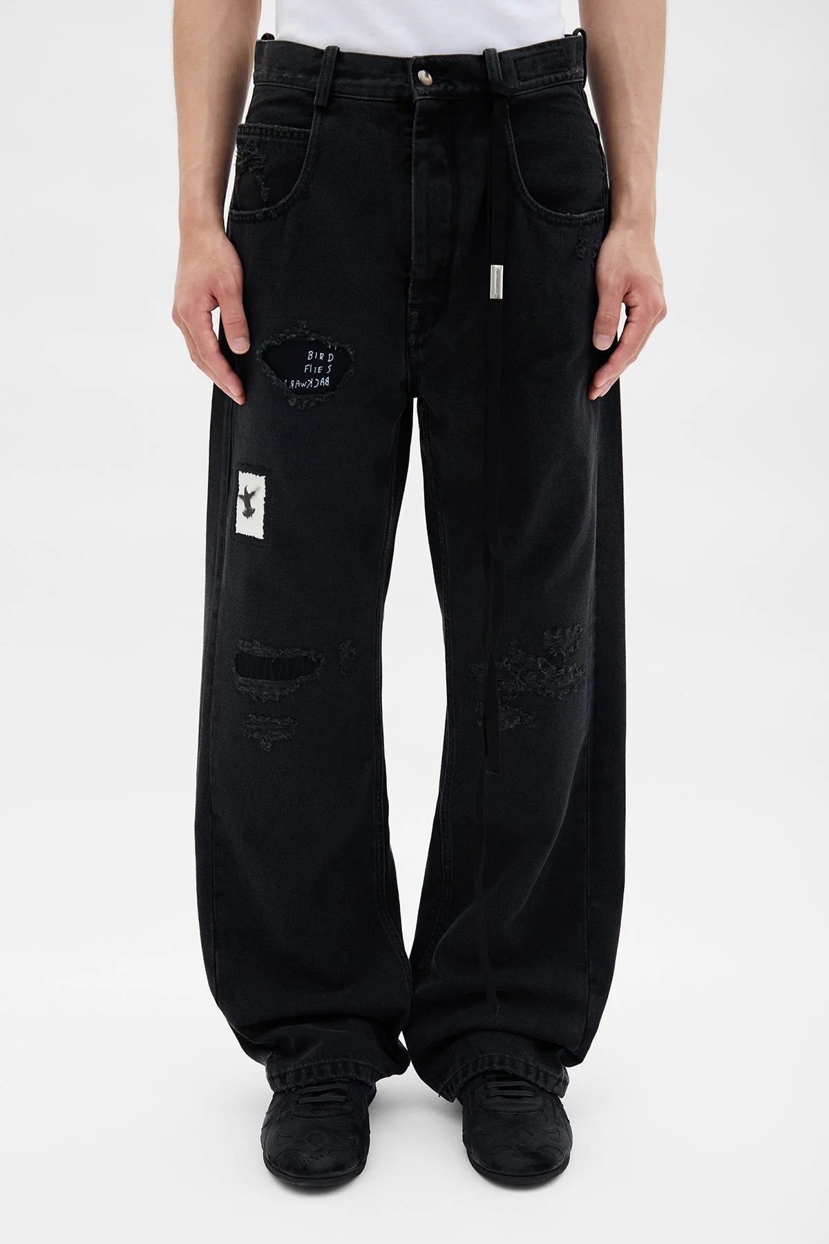 Ronald 5 Pocket Jeans with Printed Patches - Faded Grey - Washed Denim - Distressed Details - Belt Holes - Removable Signature Grosgrain Ribbon - Button Closure - 5 Pockets -Front Printed Graphic Patches - Back ''up to the sky'' Frayed Patch - 100% Cotton - Made in Italy Model wears italian size 46 Care To maintain the beauty and integrity of your purchase, we recommend treating it with care. Simple maintenance practices, such as gentle washing and proper storage, can effectively preserve the longevity of your favorites. We encourage you to refer to the care instructions included with each item, designed to help you keep your purchase in top condition. Design Our dedication to excellence extends beyond materials; it encompasses the artistry and craftsmanship illustrated in every piece we create.