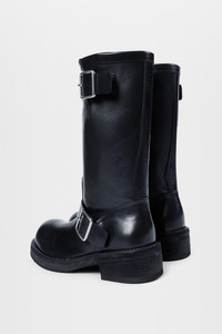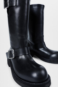 Sarith Engineer Biker Boots with Buckles - Black - 100% Cow Leather - Double Buckle Straps - Round Toe - Stacked Heel - Made in Italy Care To maintain the beauty and integrity of your purchase, we recommend treating it with care. Simple maintenance practices, such as gentle washing and proper storage, can effectively preserve the longevity of your favorites. We encourage you to refer to the care instructions included with each item, designed to help you keep your purchase in top condition. Design Our dedication to excellence extends beyond materials; it encompasses the artistry and craftsmanship illustrated in every piece we create.