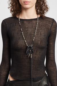 Sindri Silver Necklace With Small Leather Bag Pendant – Silver/Black – 100% Sterling Silver, 100% Leather – Made in Italy Necklace Lenght: 84 cm Strand Lenght: 49 cm Care To maintain the beauty and integrity of your purchase, we recommend treating it with care. Simple maintenance practices, such as gentle washing and proper storage, can effectively preserve the longevity of your favorites. We encourage you to refer to the care instructions included with each item, designed to help you keep your purchase in top condition. Design Our dedication to excellence extends beyond materials; it encompasses the artistry and craftsmanship illustrated in every piece we create.