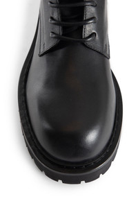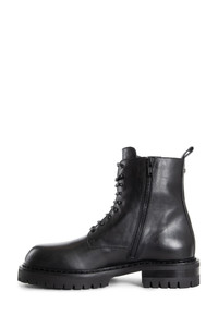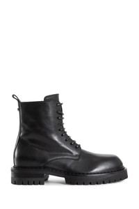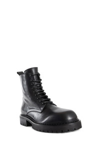 DESCRIPTION - Black - Grained shiny calfskin - Back signature rivet - Back pull tab - Lace-up closure - Side zip closure - Cleated rubber sole - Block heel DETAILS - Made in: Italy - Composition: 100% Calfskin - Model code: B0013279LT141 099 - Item ID: 9689831145814