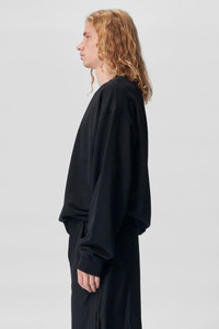 Men's Stan High Comfort Brushed Sweatshirt - Black - Brushed Jersey - Crewneck - Back Text Print - Ribbed Hem And Cuffs - High Comfort Fit - 100% Cotton - Made In Portugal Model wears size M Height: 183 cm Waist: 75 cm Hips: 92 cm