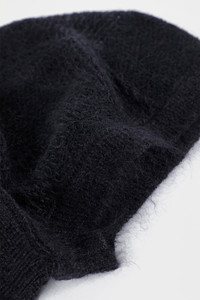 Vali Balaclava - Black - Brushed Mohair Silk Jacquard Knit - Cut-Out Front - Ribbed Edges - 70% Wool Mohair, 30% Silk - Made in Italy