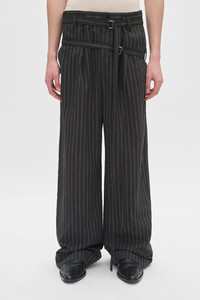 Woubrecht High Comfort Double Belted Trousers - Pinstripe - High Waist - Double Waistband with Buckle Details - Zip Fly with Button Closure - Side Seam Pockets - Back Welt Pockets with Button - Extra Long Hem - Wide Fit - 68% Viscose,31% Virgin Wool, 1% Polyurethane - Made in Italy Model wears Italian size 48 Care To maintain the beauty and integrity of your purchase, we recommend treating it with care. Simple maintenance practices, such as gentle washing and proper storage, can effectively preserve the longevity of your favorites. We encourage you to refer to the care instructions included with each item, designed to help you keep your purchase in top condition. Design Our dedication to excellence extends beyond materials; it encompasses the artistry and craftsmanship illustrated in every piece we create.