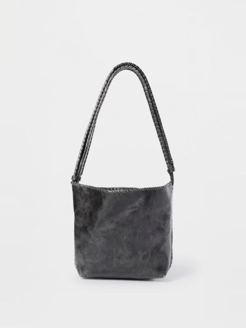 Xela Whipstitch Small Shoulder Bag - Brushed Off Calf Skin - 100% Calf Leather - Made in italy Width: 20 cm Depth: 10 cm Height: 22 cm