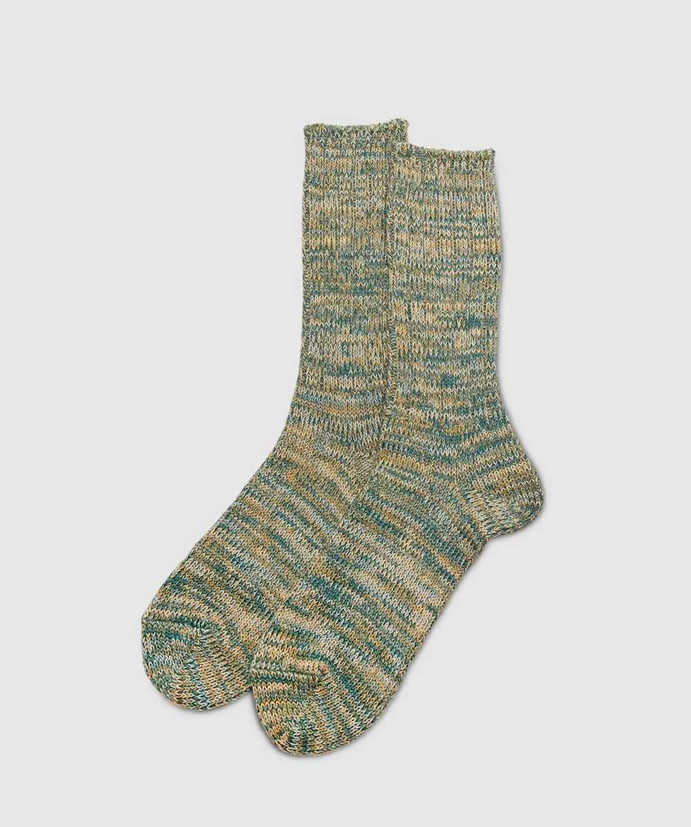 Made in Japan, leaning on comforting and planet conscious materials as a constant, Anonymous Ism introduce the 5 colour mix crew sock. Versatile in design, look to this latest iteration for a fail-proof staple. • Ribbed, lightweight • ¾ length • All-over marled pattern • 94% cotton, 5% polyester, 1% polyurethane • Made in Japan • Item code: 80438900 35 Product Information • 4113102