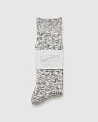 The "Light Slub Crew" series from AnonymousIsm signature slub socks with a minimalist textured design. Woven using a slub weave yarn, the socks sport a tubular construction with ribbed knitting. Each pair of AnonymousIsm socks are expertly crafted by their team in Tokyo, Japan. - Low gauge pile weave - 66% Cotton 28% Acrylic 5% Polyester 1% Spandex - Made in Japan One size. Fits US 9-12.
