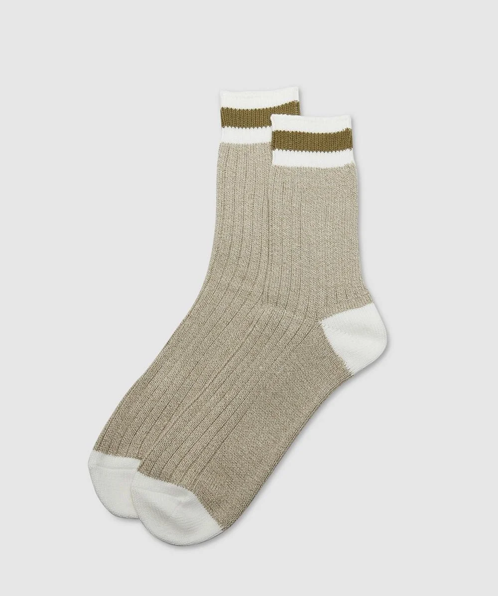 Designed to offer all day comfort and style, Anonymous Ism introduce the Tuck cuff stripe crew sock. Continuing to champion sustainability, look to this latest offering for an elevated addition to your everyday street style. • Ribbed, lightweight • ¾ length • 87% Cotton, 11% Nylon, 2% Polyurethane • Made in Japan • Item code: 80439200 36 Product Information • 4113105