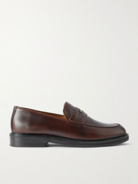 A.P.C.'s collaboration with Marc Jacobs is preppy and cool. These loafers are made from polished leather and detailed with two-tone coins peeking out from the penny slots. Size & Fit - Fits true to size. Take your normal size - Only available in full sizes, go down to the nearest whole size if you take a half size - European sizing Details & Care - Brown leather (Calf)