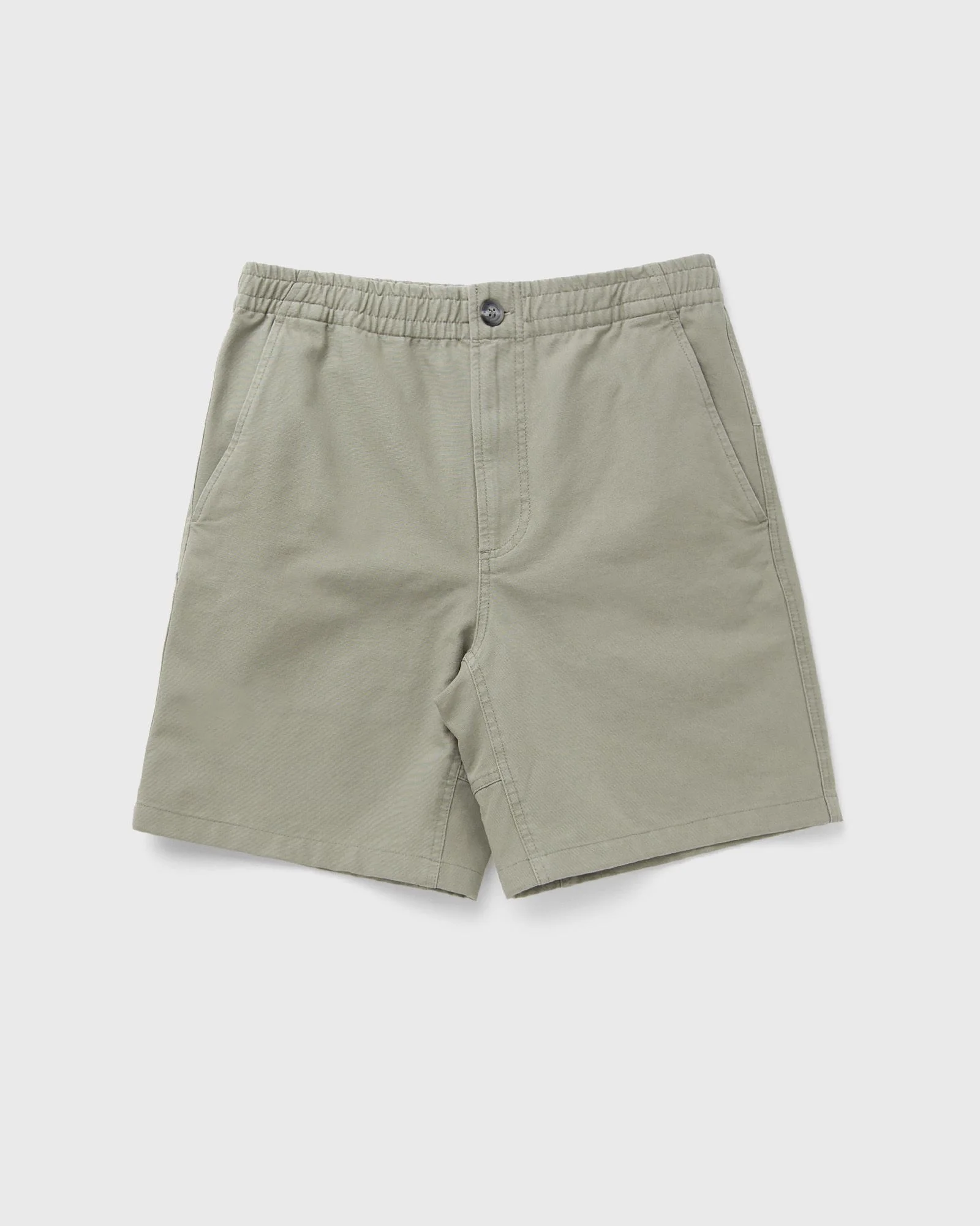 The A.P.C. Norris shorts in workwear style are made from organic cotton in a straight, slightly wider cut. They are above knee length and have an elastic waistband for a comfortable fit. - Straight and slightly wider cut - Above knee length - Elastic waistband - Zipper - Two side pockets and two back pockets Article number: COGBJ-H10186-KAE Gender: men Color: VERT GRISE Material: 100% Cotton