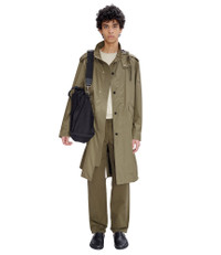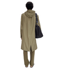 PRODUCT DETAILS -Unisex model. -Water-repellent material. -Straight, slightly loose cut. -Stand-up collar with snap closure. -Side flap pockets. -High collar. Hood with brim, adjusts with tone-on-tone drawstrings. -Back slit. FABRIC & CARE - 60% Polyester. 32% Polycarbonate. 8% Polyurethane. - Italian material. - Made in Romania. - Dry clean. SIZE - Lorena is 5'11" tall and is wearing size XS. - Hatim is 6'2" tall and is wearing size M. - This model fits true to size; choose your usual size.