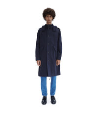 PRODUCT DETAILS - Straight, slightly loose cut. - Classic collar. - Two side flap pockets. - Hood with high collar and tone-on-tone drawstrings. - Single vent. - Water-repellent. FABRIC & CARE - 71% cotton. 29% polyamide. - Italian material. - Made in Romania. - Dry clean. SIZE - Méline is 5'9'' tall and is wearing size S. - Lenny is 6'1'' tall and is wearing size M. - This item sizes normally. We recommend that you select your usual size.