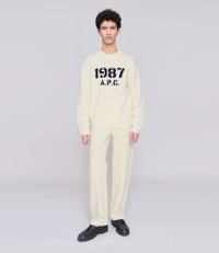- Soft warm material. - Straight cut with a slightly loose fit. - Crew neck. - Military stencil-style 1987 A.P.C. chenille logo. Size Advice - Adam is 6'1 tall and is wearing size M. Composition & Material - 100% wool. - Made in Hong Kong. - Hand wash or delicate cycle.
