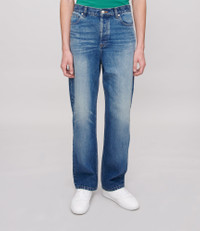 - Unisex piece. - High rise. - Very wide leg. - Button fly. - Caramel topstitching. - Silvertone rivets. Size Advice - Leo is 6'1 tall and is wearing size 30. Composition & Material - 100% cotton. - Made in Egypt. - Do not dry clean. - Machine wash cold (86°F) inside-out. - Gentle spin cycle. - Do not tumble dry. - The jeans may appear shrunken after washing but they return to their original shape when worn.