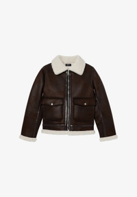 - Sheepskin feel. - Loose fit. - Large woolly collar. - Two large buttoned flap pockets and two side pockets. - Sleeve ends and hem trimmed with faux sheepskin. Size Advice - Adam is 6'1 tall and is wearing size M. Composition & Material - 100% polyester. - Made in Romania. - Dry clean only.