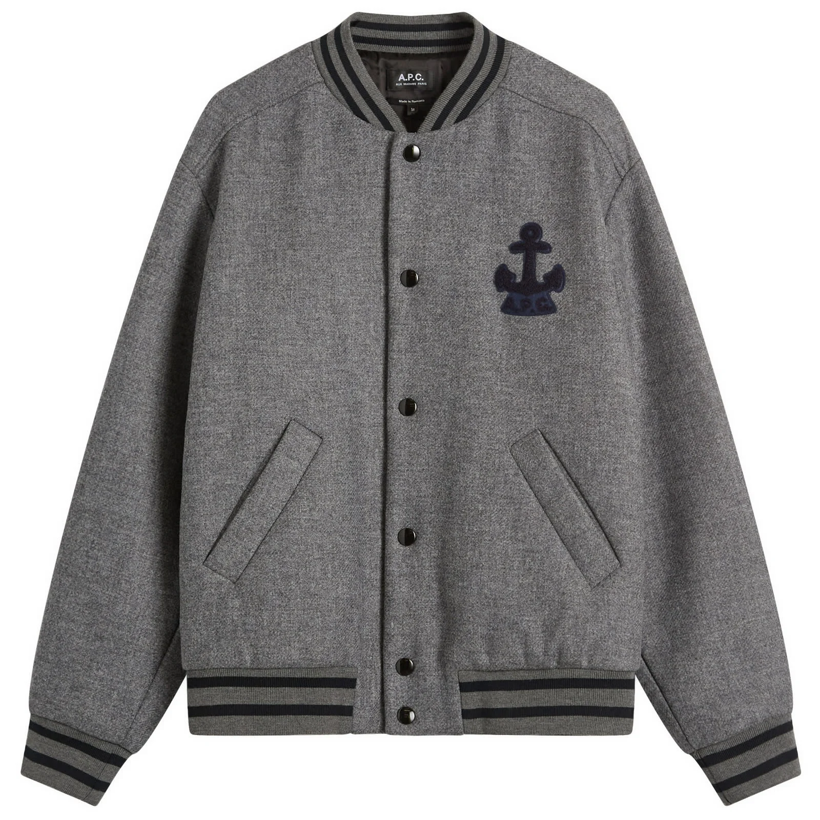 The A.P.C. Micka varsity jacket channels classic Americana through a refined Parisian lens. With its structured silhouette, ribbed trims and sleek snap button closure, it captures timeless collegiate style. A tonal A.P.C. logo patch with an anchor detail sits at the chest, adding an elevated finishing touch. - 75% Wool, 25% Polyamide - Ribbed Trims - Snap Button Closure - Front Pockets - Bomber Collar - Branded Patch - Product Code: WVBEB-M32010-PLA