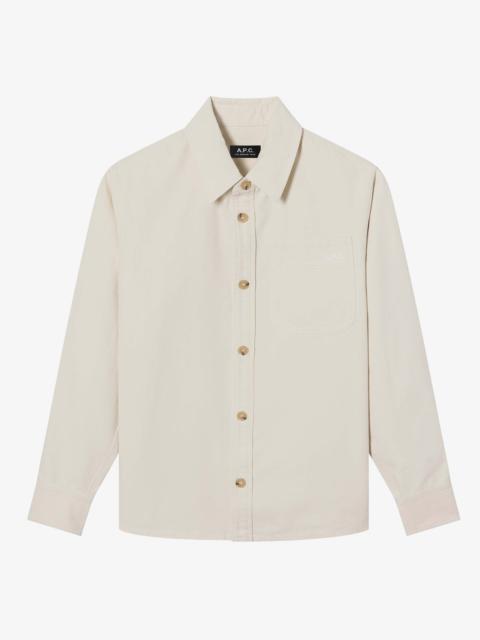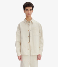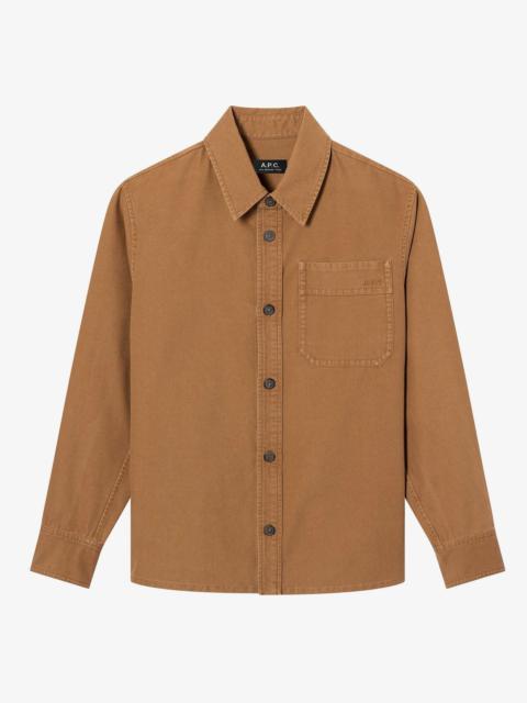 - Straight cut with a loose fit. - Sloping shoulders. - One pocket over the heart embroidered with the A.P.C. logo. - Hang tab in back. - Wear with the Vincent pants or Martin jeans. Size Advice - Adam is 6'1 tall and is wearing size M. Composition & Material - 100% cotton. - Italian material. - Made in Tunisia. - Machine wash cold (86°F) inside-out.