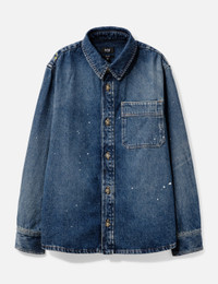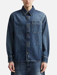 - A.P.C. - Basile Shirt - Washed denim fabric - Button closure - Chest pocket - Hand-applied spray paint throughout - Due to the nature of hand-applied process, paint patterns will differ for each product - Straight hem - Wash and iron inside-out - Color: Washed Indigo - Material: 100% Cotton - See more Shirts and Clothing SIZING - Model wears size M - Model measures: Height 186cm, Chest 34”/86cm, Waist 28”/71cm, Hip 36”/91cm
