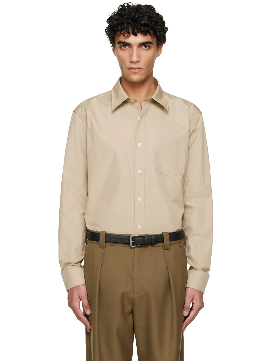 Organic cotton poplin shirt. · Spread collar · Button closure · Patch pocket at chest · Buttoned barrel cuffs · Logo-engraved mother-of-pearl hardware Supplier color: Beige 100% cotton. Made in Tunisia 261252M192007