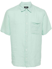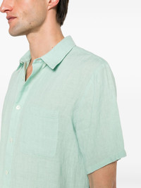 Bellini linen shirt Highlights - Mint green - Linen/flax - Chambray - Classic collar - Short sleeves - Chest patch pocket - Embroidered logo at the chest - Internal logo tag - Curved hem - Front button fastening Imported Composition Linen/Flax 100% SIZE & FIT Model measurements Height 6 ft 2 in(1.87 m) Bust/Chest 37.79 in(96 cm) Hips 37.79 in(96 cm) Waist 30.31 in(77 cm) Measurement CHEST 43.3 in(110 cm) LENGTH 29.92 in(76 cm) WAIST 42.51 in(108 cm) SLEEVE LENGTH 9.84 in(25 cm) Shoulder Width 19.29 in(49 cm) FittingInformation Designed for a relaxed fit, this piece allows for comfort and movement when worn Made from a midweight non-stretch fabric This piece fits true to size – take your usual size Washing instructions Machine Wash