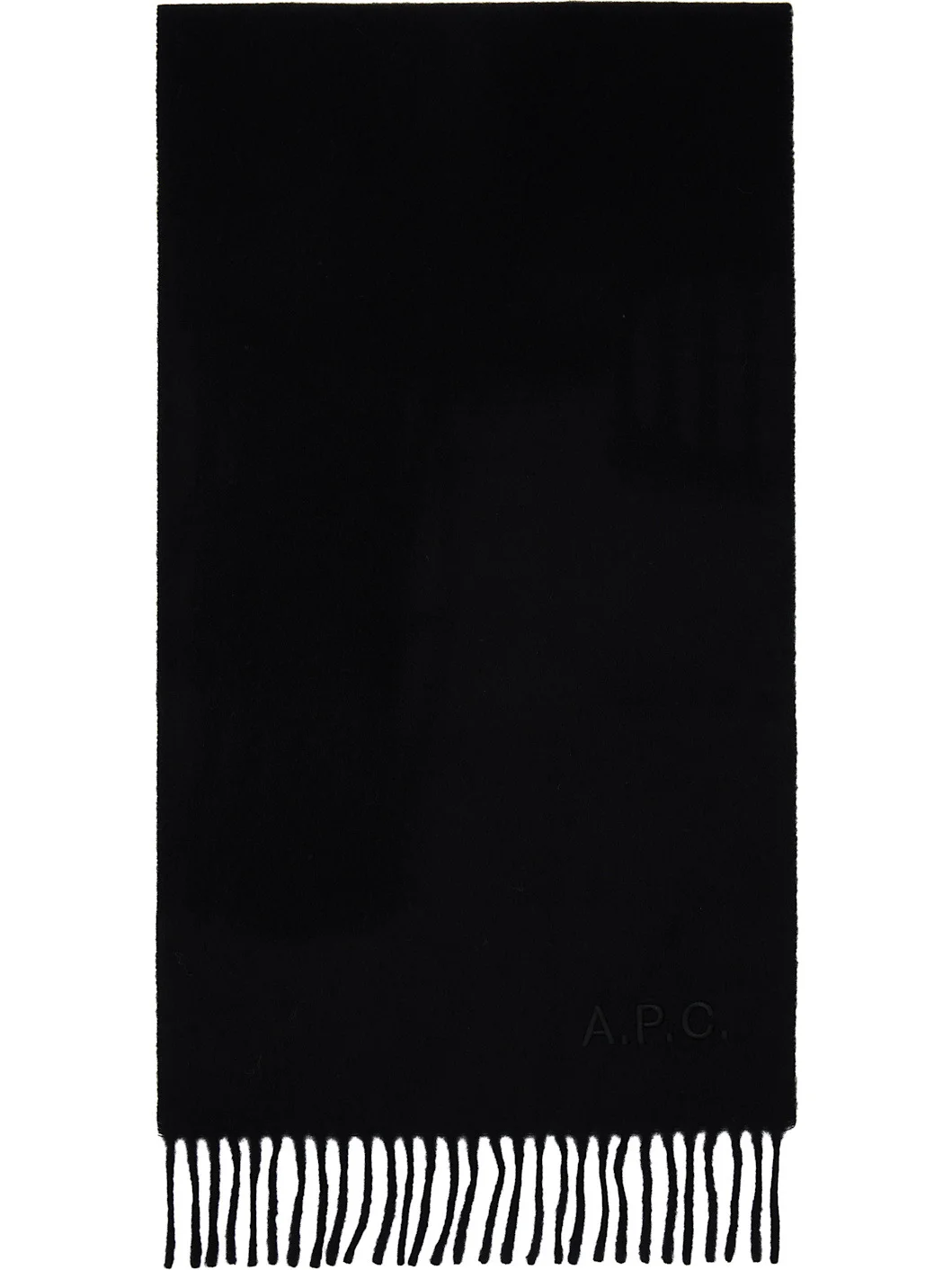 Rectangular virgin wool flannel scarf. · Logo embroidered at face · Fringed detailing at ends · L74" x W13.5" Supplier color: Black 100% virgin wool. Made in Italy 252252M150007