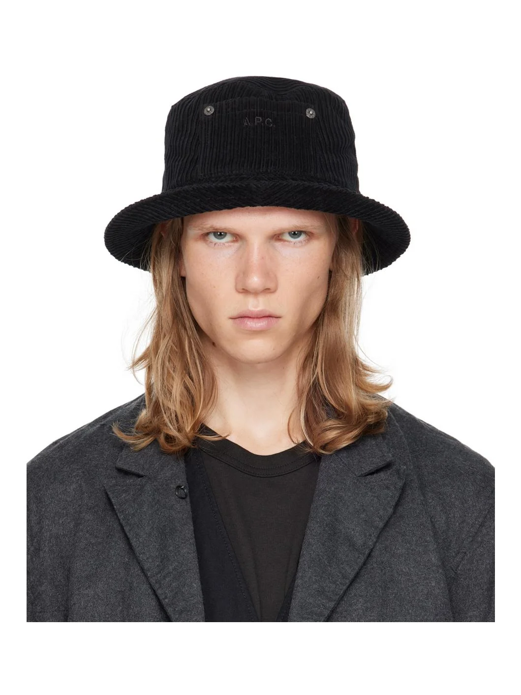 Cotton corduroy bucket hat in black. · Patch pocket and embroidered logo at side · Quilted brim · Webbing browband · Twill lining Supplier color: Black Body: 100% cotton. Lining: 60% cotton, 40% polyester. Made in Bulgaria 242252M140002