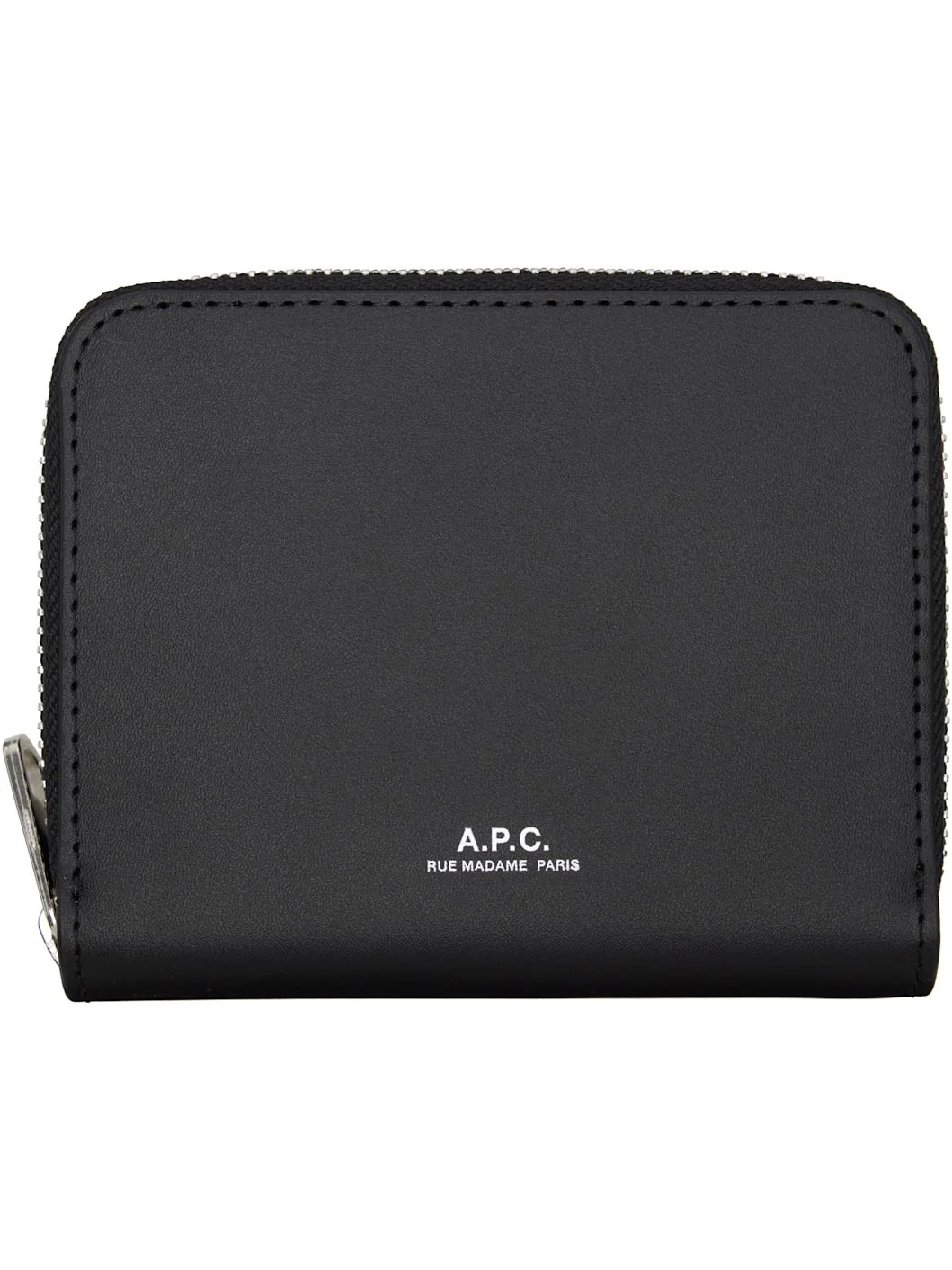 Buffed leather wallet. · Logo stamp at face · Zip closure · Three card slots and single note slot · Press-stud coin compartment · Leather interior · Canvas lining · Silver-tone hardware · H4" x W4.75" Supplier color: Black Leather. Made in Spain 261252M164007