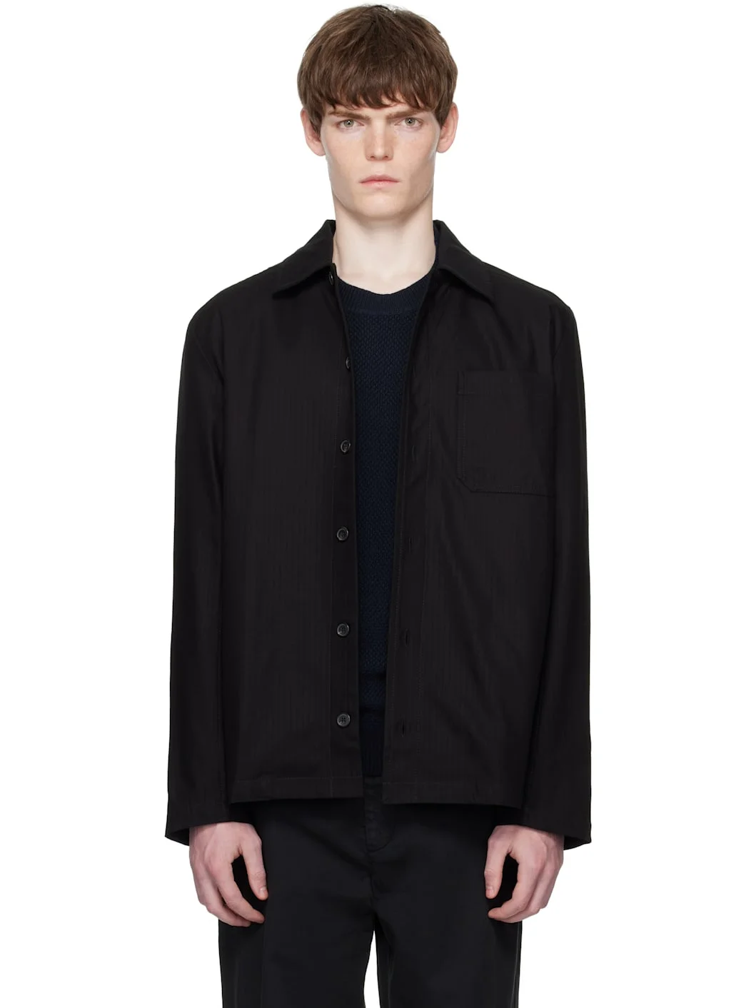 Cotton herringbone twill jacket. · Spread collar · Button closure · Patch pocket at chest · Seam pockets at waist · Patch pocket at interior · Cotton twill and viscose satin lining · Logo-engraved faux-horn hardware Supplier color: Noir Body: 100% cotton. Lining 1: 100% cotton. Lining 2: 100% viscose. Made in Tunisia 252252M180005