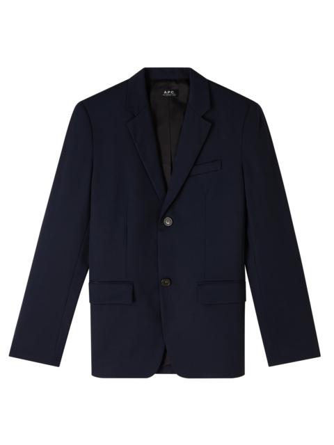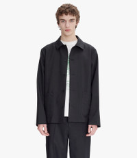- Crisp slightly textured material. - Straight cut. - Topstitched classic collar. - Closes with five buttons. - Two pockets at the bottom of the jacket. - Unlined. - Wear with the Pieter pants. Size Advice - Leo is 6'2 tall and is wearing size M. Composition & Material - 100% wool. - Portuguese material. - Made in Bulgaria. - Dry clean only.