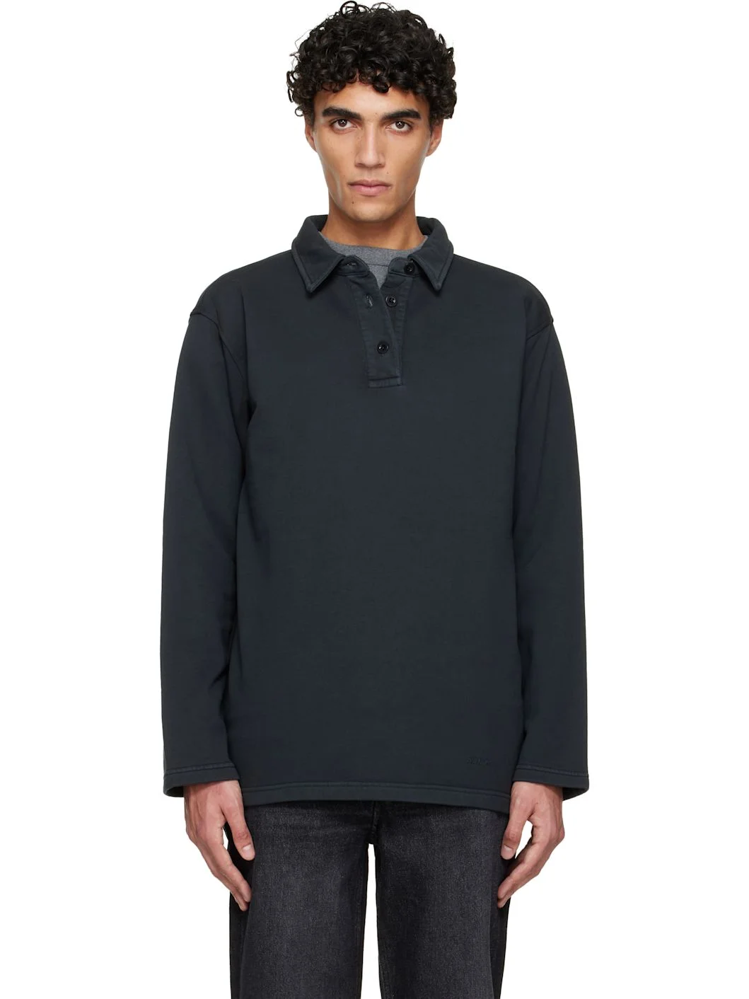 Organic cotton French terry polo. · Spread collar · Three-button placket · Dropped shoulders Supplier color: Black 100% cotton. Made in Turkey 261252M212009