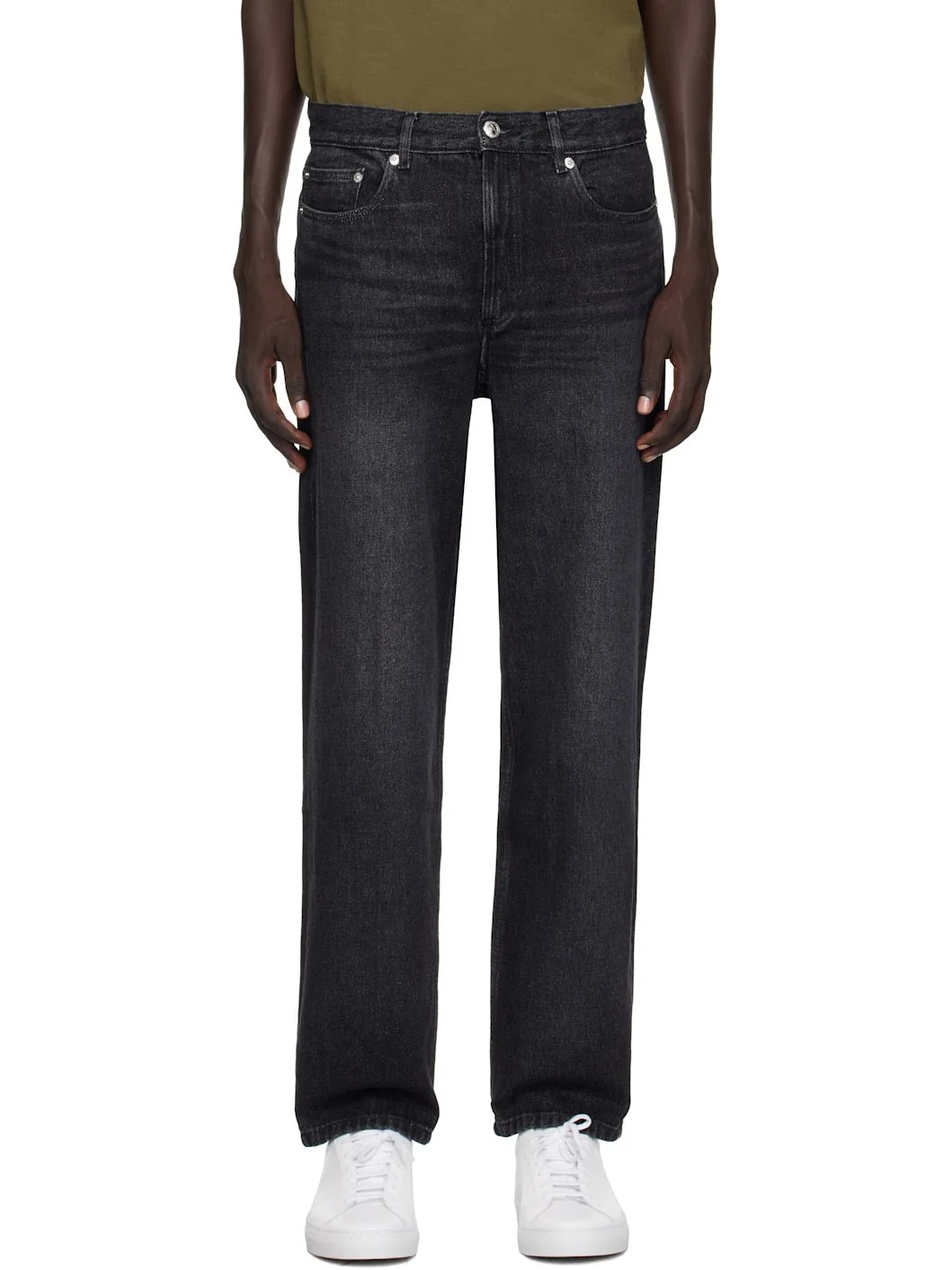 Non-stretch denim jeans. · Fading and whiskering throughout · Straight-leg · High-rise · Belt loops · Five-pocket styling · Zip fly · Logo-engraved silver-tone hardware Supplier color: False black 100% cotton. Made in Egypt 252252M186035