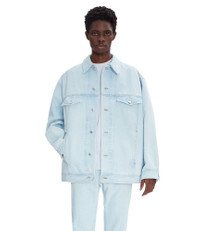 A.P.C. Men's jacket. - Fits oversized. Size down 1 for regular fit. - Straight cut with a loose fit. - Sloping shoulders. - Classic collar. - Two breast pockets with buttoned flaps. - Two side pockets. - Caramel topstitching. Size Advice - Vincent is 6'1 tall and is wearing size M. - Fits oversized. Size down 1 for regular fit. Composition & Material - 100% cotton. - Egyptian material. - Made in Egypt. - Machine wash cold (86°F) inside-out.