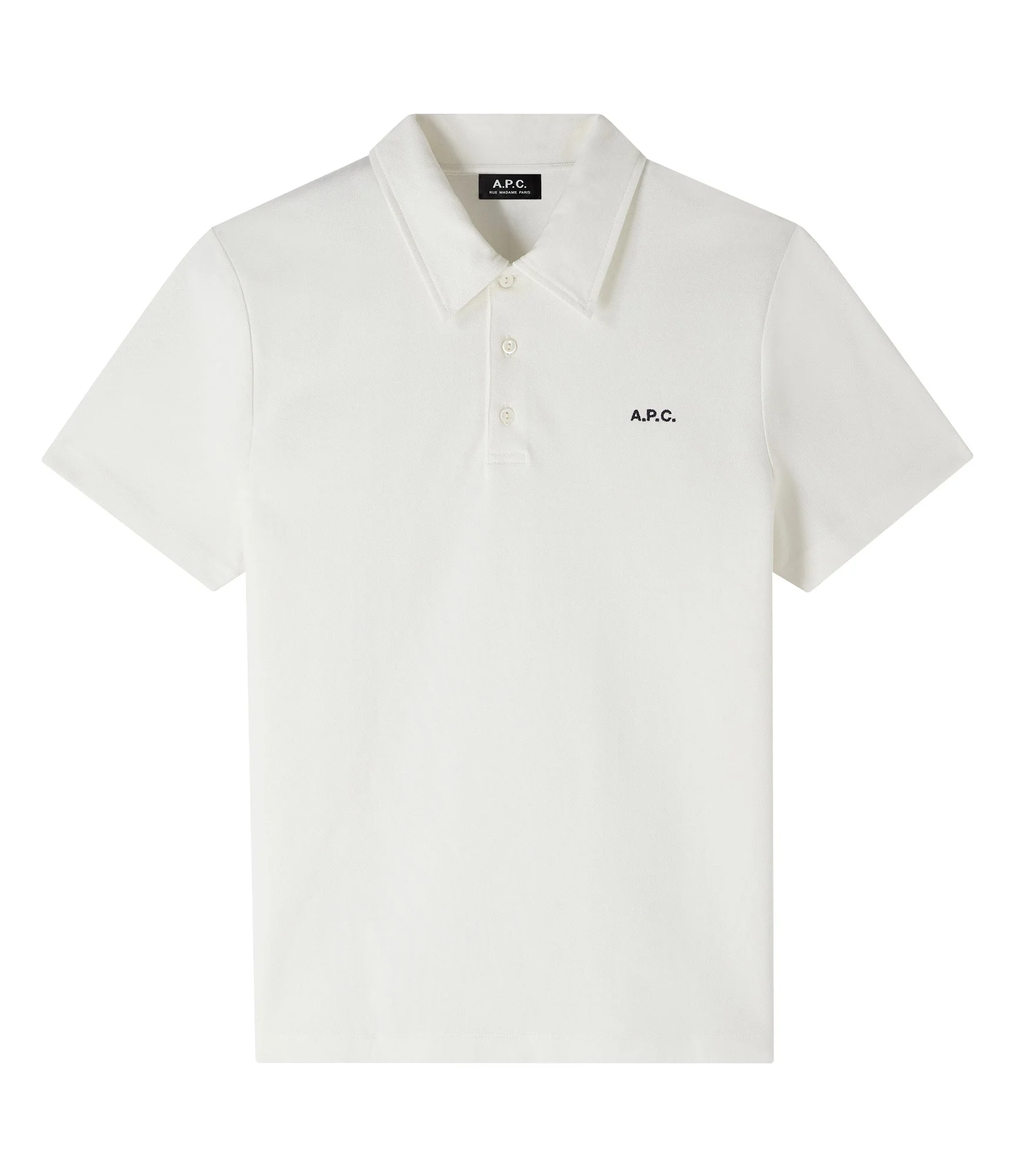 - Straight cut. - Polo collar with three tone-on-tone buttons. - Contrasting A.P.C. logo embroidered over the heart. - Small side slits. - Contains 100% cotton from organic farming. Size Advice - Antoine is 6'1 tall and is wearing size M. Composition & Material - 100% Cotton. - Made in Turkey. - Machine wash cold 65-85˚ F inside-out.
