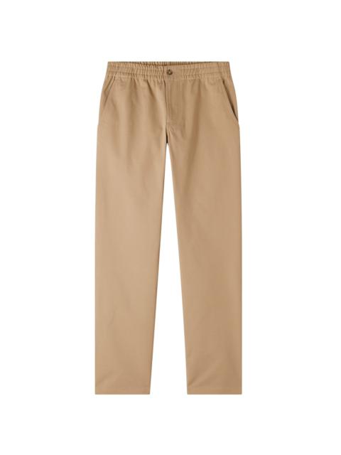A.P.C. Men's pant. - Straight slightly loose cut. - Elasticated waist. - Zip fly. - Side pockets. Back pockets. Pocket on leg. - Peach-feel material. Size Advice - Hatim is 62 tall and is wearing size 48. - This model fits true to size; choose your usual size. Composition & Material - 100% Cotton. - Italian material. - Made in Romania. - Machine wash (86°F) inside-out.