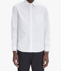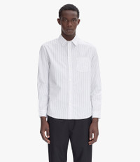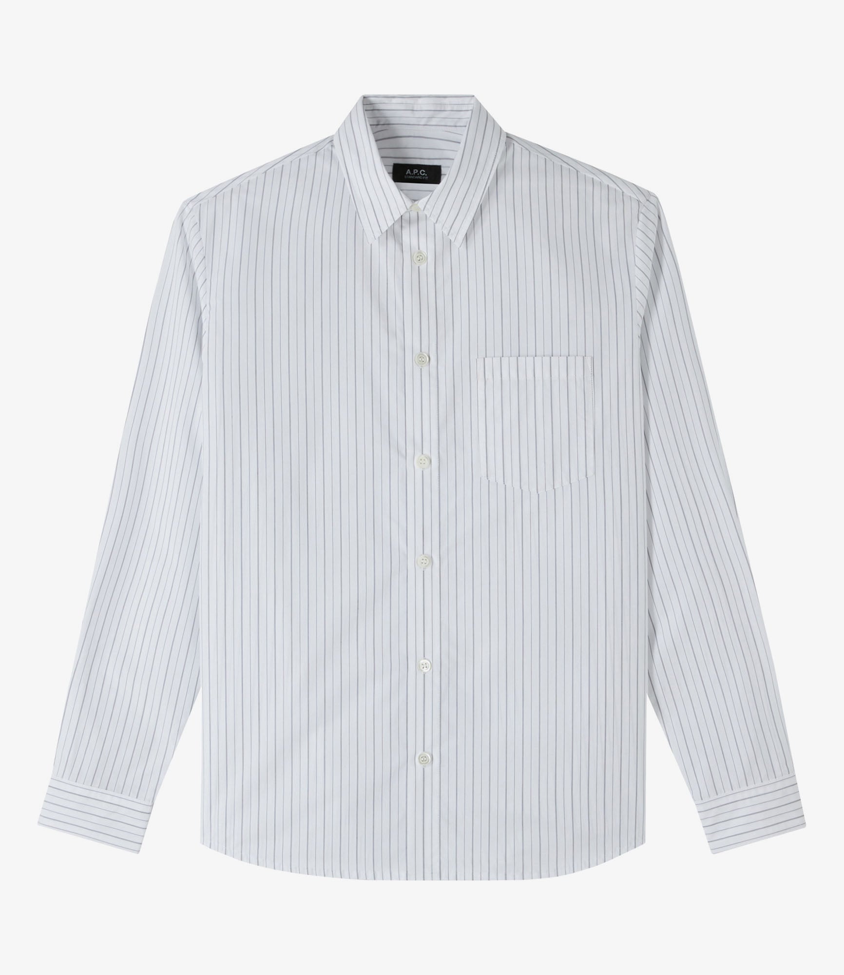 - Straight cut with a slightly loose fit. - Classic collar. - One pocket over the heart. - White mother-of-pearl buttons. Size Advice - Malaha is 6'2 tall and is wearing size M. Composition & Material - 100% cotton. - Portuguese material. - Made in Tunisia. - Machine wash cold (86°F) inside-out.