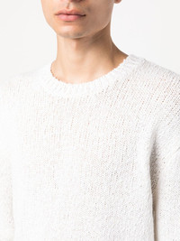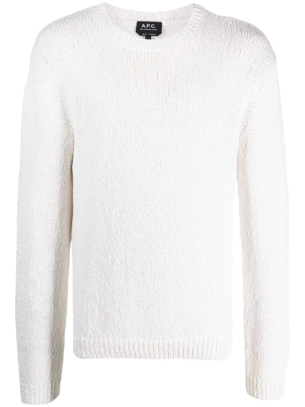 crew-neck knitted jumper Famous for its minimalist design styles, A.P.C. introduces this crew neck knit jumper in an off-white hue. Free from any embellishments, the piece's textural loose knit construction takes centre stage. Highlights - Off-white - Cotton-wool blend - Knitted construction - Crew neck - Long sleeves - Straight hem - Ribbed trim Imported Composition Cotton 82%, Wool 18% SIZE & FIT Model measurements Height 6 ft 1 in(1.85 m) Bust/Chest 35.82 in(91 cm) Hips 37.79 in(96 cm) Waist 29.13 in(74 cm) FittingInformation Designed for a slim fit, offering a comfortable fit that sits just away from the body Made with a midweight knit, this piece offers some stretch This piece fits true to size – take your usual size