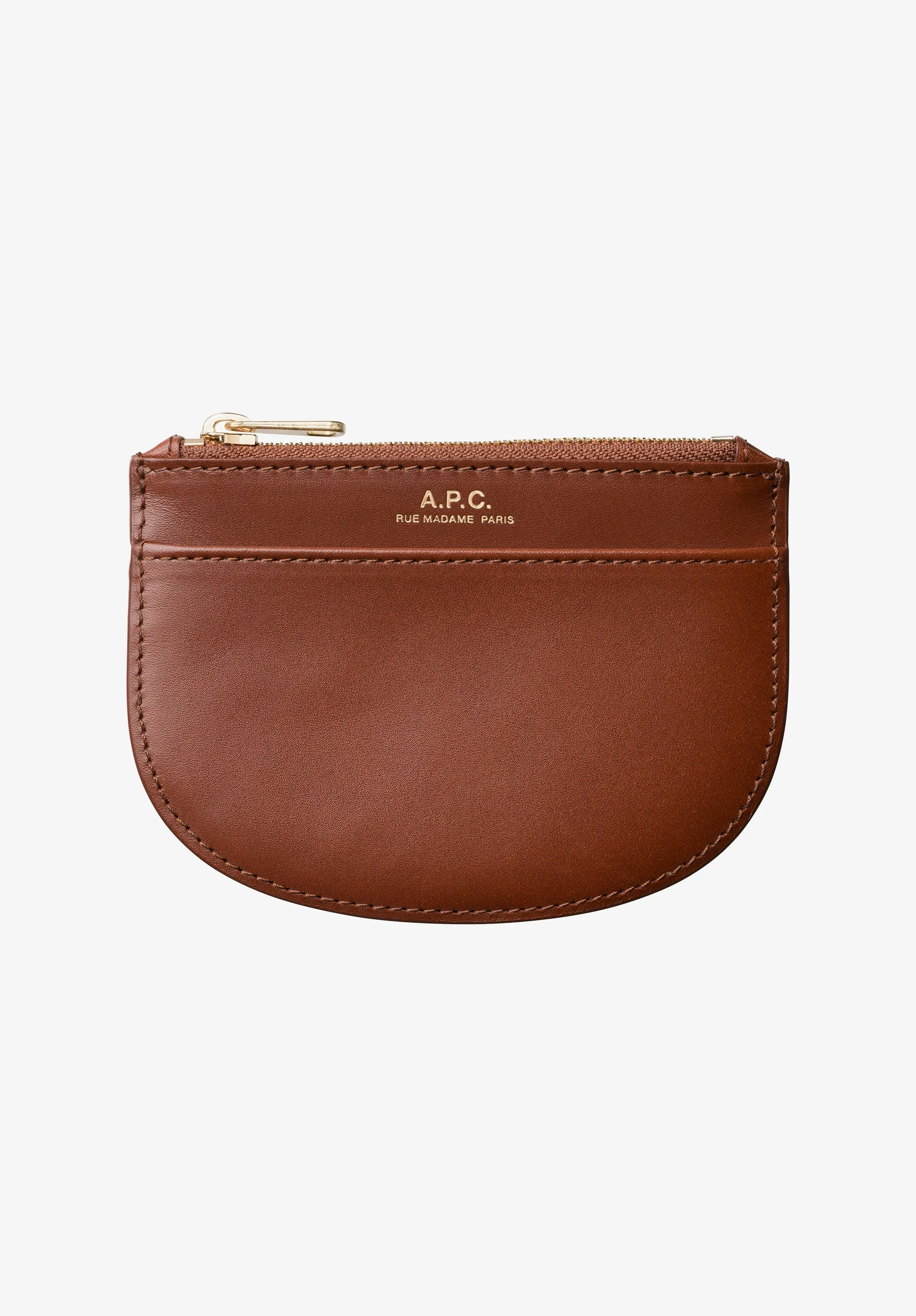 - Smooth vegetable-tanned leather. - One zip coin pocket. - Three card slots: one on front and two inside. - Embossed goldtone 'A.P.C. Rue Madame Paris' logo. - Inspired by the Demi-Lune bag. Size Advice - Dimensions: 4.5 x 0.8 inches. - Cardholder with a payment card format. Composition & Material - 100% leather. - Spanish material. - Made in Morocco. - Vegetable-tanned leather is produced with natural tannins. - Marks and traces that will develop on the leather are normal and are part of its natural patina process. - Light colors will darken as well. - Leather must be protected from the sun heat and water. - Care instructions: wipe with a soft dry cloth.