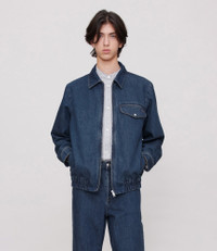 - Rather stiff Japanese denim canvas material. - Straight cut. - Classic collar. - One buttoned flap pocket on the chest with an embroidered A.P.C. logo. - Two side pockets. - Zip closure. - Caramel topstitching. - Elasticated hem. - 100% organic cotton. Size Advice - Leo is 6'1 tall and is wearing size M. - This item sizes normally. We recommend that you select your usual size. Composition & Material - 100% cotton. - Japanese material. - Made in Vietnam. - Machine wash cold (86°F) inside-out.