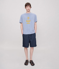 - Straight slightly wide cut. - Above-knee length. - Elasticated waist. - Zip fly. - Two side pockets and two back pockets. - 100% organic cotton. Size Advice - Tristan is 6'1 tall and is wearing size M. - This item sizes normally. We recommend that you select your usual size. Composition & Material - 100% cotton. - Italian material. - Made in Tunisia. - Machine wash cold (86°F) inside-out.