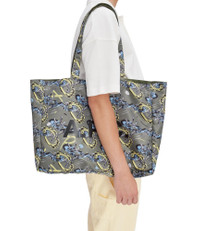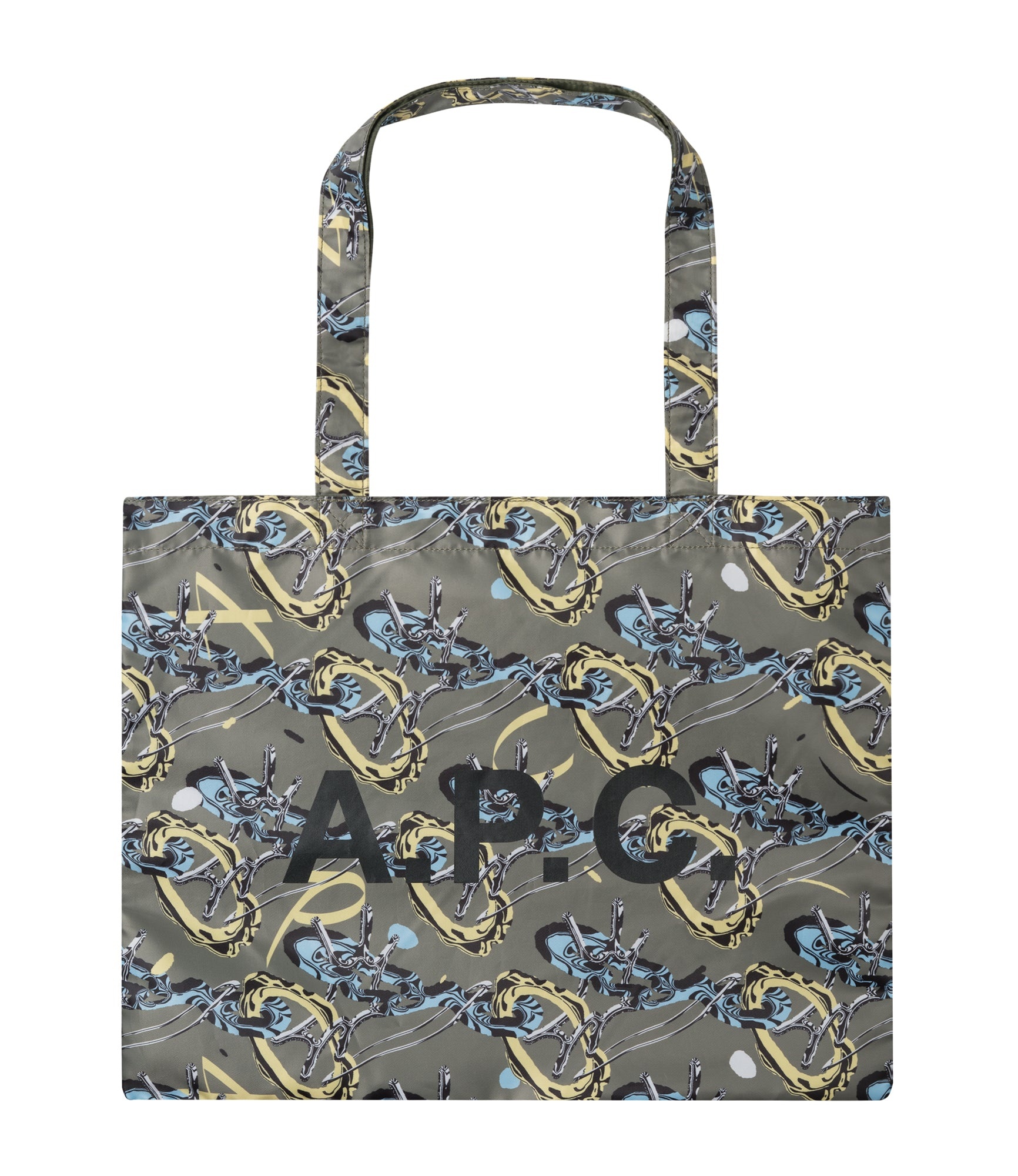 PRODUCT DETAILS - Unisex model. - Denim tote bag. - Two large handles to carry the bag by hand or on the shoulder. - One interior pocket. - Black silkscreened 'A.P.C.' print. FABRIC & CARE - 100% polyester. - Made in China. SIZE - Dimensions: 17.7 x 14 x 5.5".