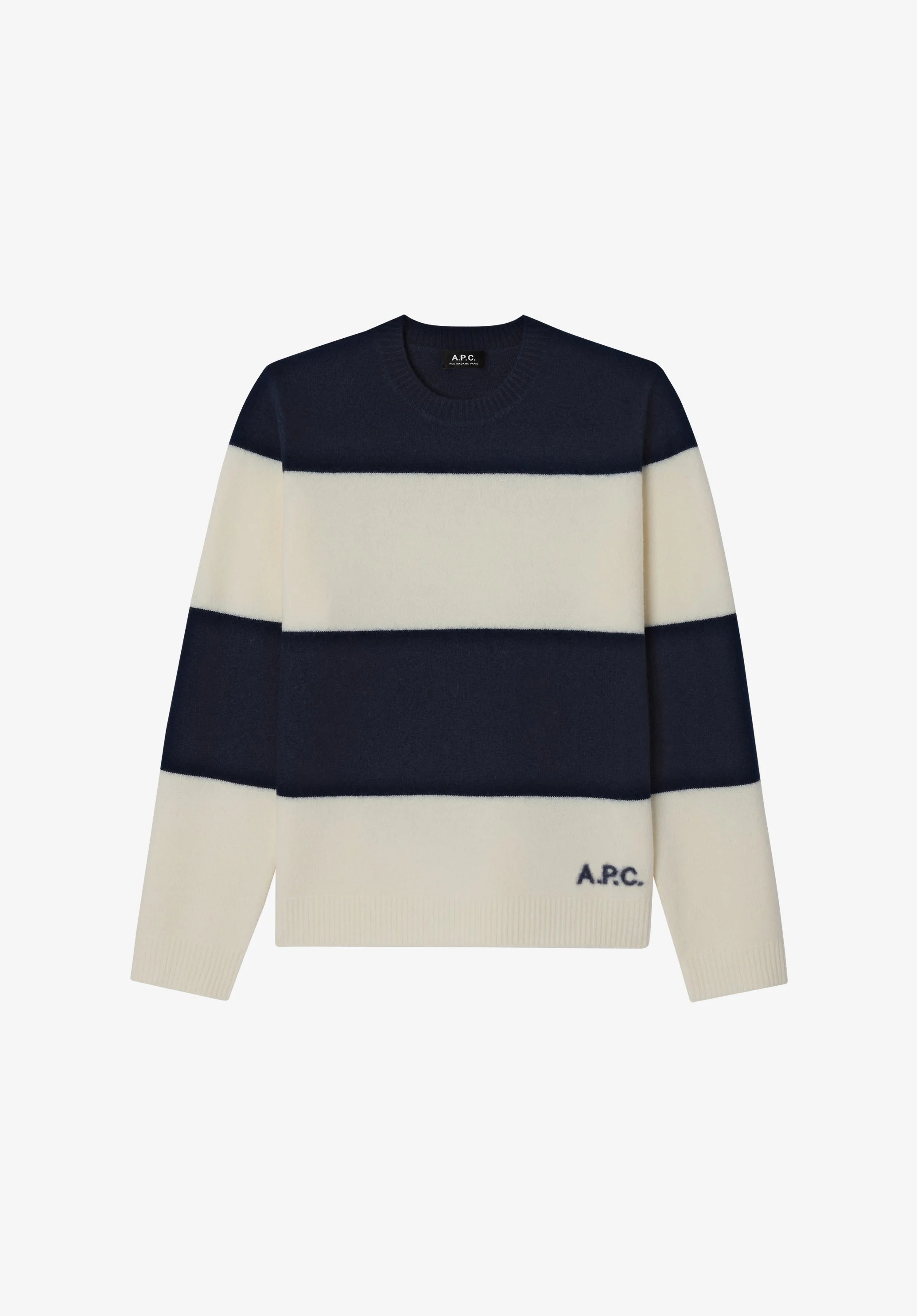 - Soft warm material. - Straight cut. - High collar. - A.P.C. logo at lower left. Size Advice - Adam is 6'1 tall and is wearing size M. Composition & Material - 100% wool. - Made in Hong Kong. - Hand wash or delicate cycle.