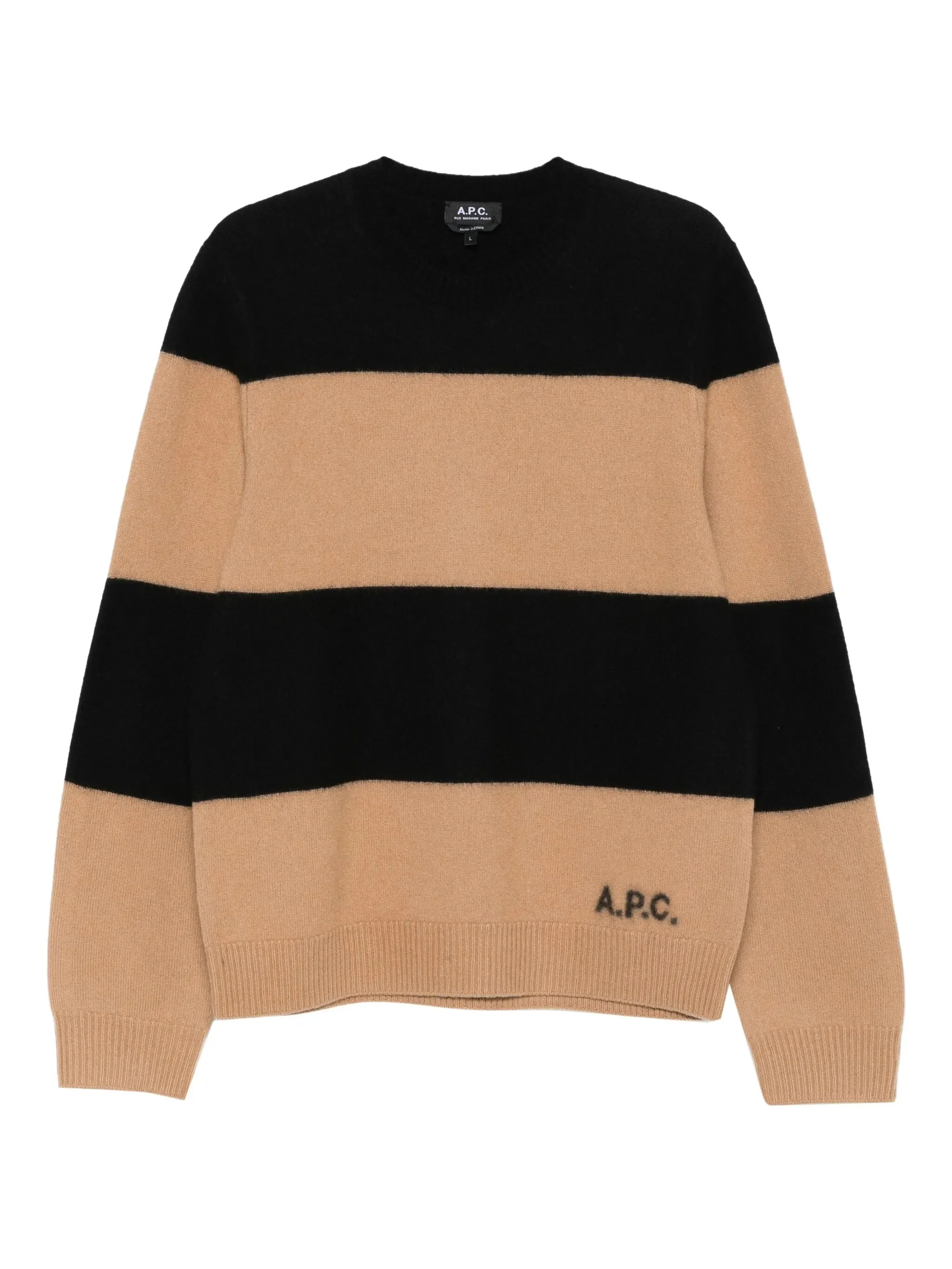 camel black stripes crew neck long sleeves ribbed cuffs embroidered logo - Color: NEUTRALS/BLACK - Made in: China - Designer Style ID: WVBDL H23364 LWC Composition and care Merino: 100.0%