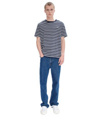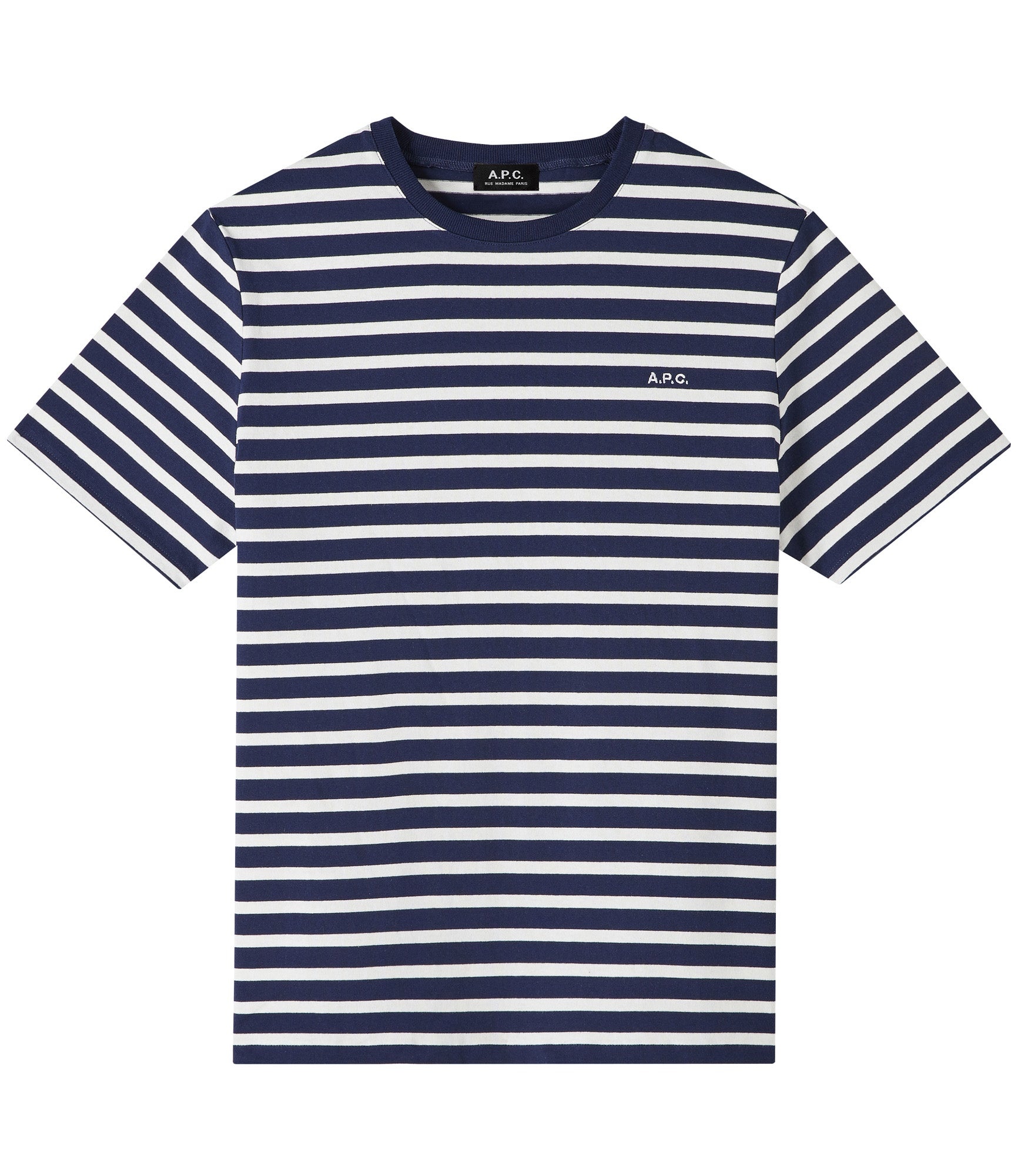 A.P.C. Men's T-shirt. - Thick material (220 g). - Straight cut. - Crew neckline. - Embroided A.P.C. logo over the heart. - 100% Cotton from organic farming. Size Advice - Elias is 6'2 tall and is wearing size M. - This model fits true to size; choose your usual size. Composition & Material - 100% Cotton. - Portuguese material. - Made in Portugal. - Machine wash (86°F) inside-out.