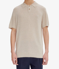 A.P.C. Men's polo shirt. - Lightweight summery material. - Straight cut. - Polo collar with two corozo buttons. - Contains 27% linen. - Same fabric also available in: Florian sweater Size Advice - Antoine is 6'1 tall and is wearing size M. Composition & Material - 69% Viscose. 27% Linen. 4% Polyamide. - Italian material. - Made in Romania. - Machine wash delicate cycle or by hand.