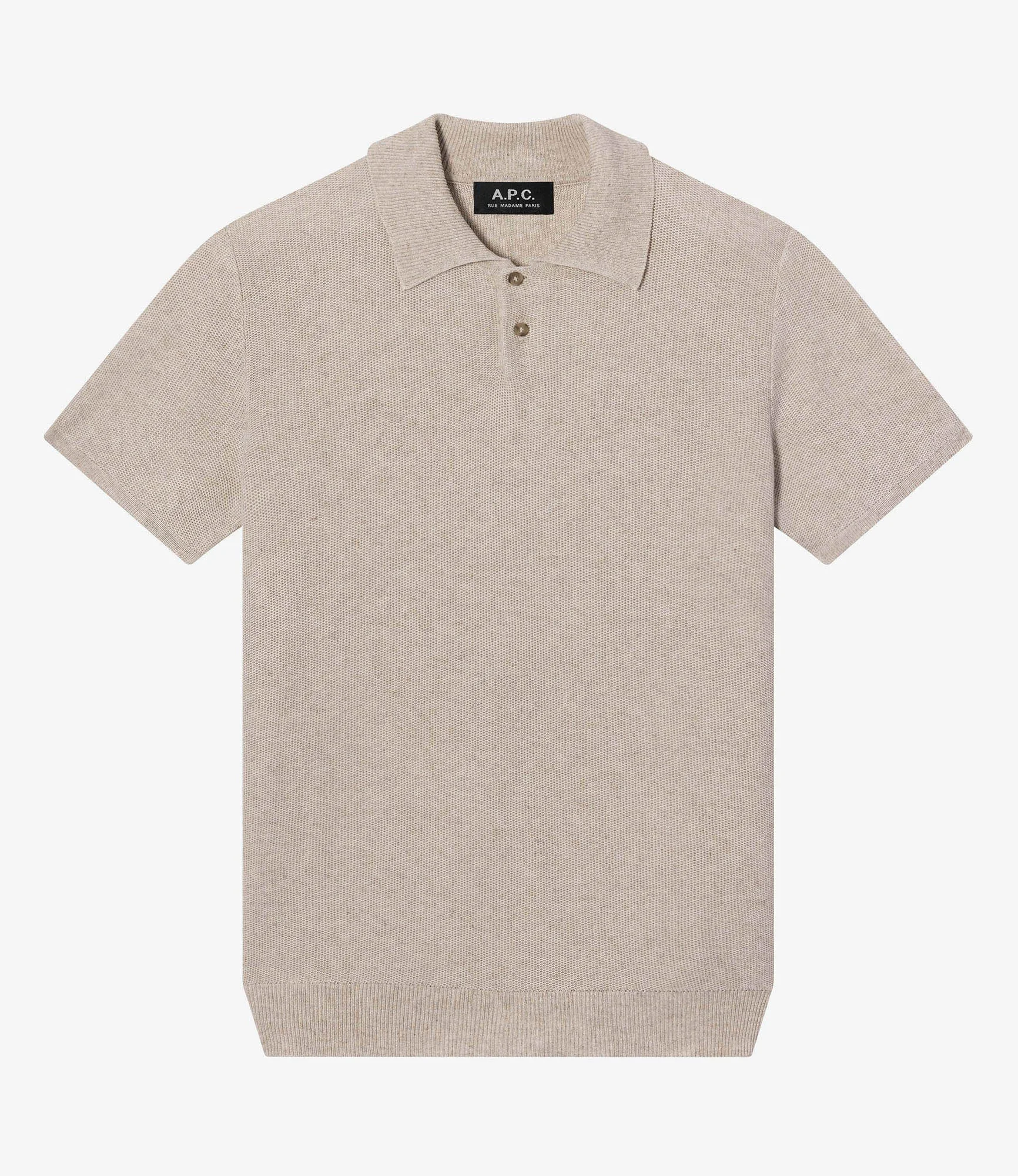 A.P.C. Men's polo shirt. - Lightweight summery material. - Straight cut. - Polo collar with two corozo buttons. - Contains 27% linen. Size Advice - Antoine is 6'1 tall and is wearing size M. Composition & Material - 69% Viscose. 27% Linen. 4% Polyamide. - Italian material. - Made in Romania. - Machine wash delicate cycle or by hand. Our commitments Through its RESPECT program A.P.C reduces (by implementing many practical measures to improve its environmental footprint) regulates (by respecting and enforcing its ethical responsibility on the part of its employees as well as its suppliers) and reuses (through its recycling vintage or quilts and butler programs for example).