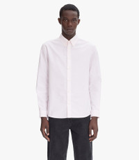 - Straight cut. - Slightly sloping shoulders. - Button-down collar. - Tone-on-tone A.P.C. logo embroidered over the heart. - 100% organic cotton. Size Advice - Malaha is 6'2 tall and is wearing size M. Composition & Material - 100% organic cotton. - Portuguese material. - Made in Tunisia. - Machine wash cold (86°F) inside-out.