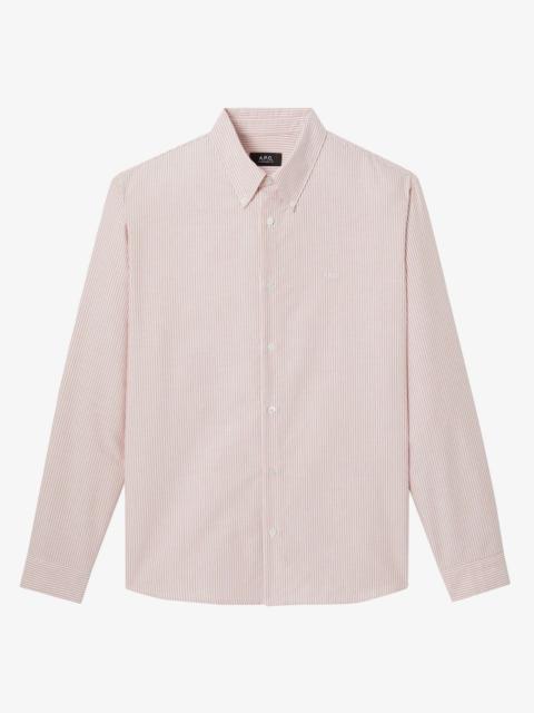 - Straight cut. - Slightly sloping shoulders. - Button-down collar. - Tone-on-tone A.P.C. logo embroidered over the heart. - 100% organic cotton. Size Advice null Composition & Material - 100% cotton. - Portuguese material. - Made in Tunisia. - Machine wash cold (86°F) inside-out.